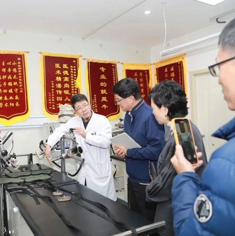 委员们先后深入医院骨伤科、中医科、脊柱侧弯门诊、康复科等核心科室实地考察。在脊柱侧弯门诊,委员们重点察看了科室硬件设施配置、特色技术体系构建及临床业务开展情况,详细询问诊疗流程、患者接诊量及技术推广现状,对科室在中低度侧弯矫正及手术指征规避方面的临床效果给予关注。